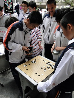在13日中午仅有的40分钟招新时间里。各个社团的招新人员都卯足了劲摇旗呐喊,招纳社员。社团之间的竞争也显得越发激烈。由于今年参加招新的社团大大超过往期,各个社团招新点的面积也相应减少了许多,但面积的减少并没有影响社团丰富的招新计划。音乐社为了增大场地的面积巧妙地利用了电梯间入口的台阶,席地而坐,用歌曲联唱的方式招募社员的加盟。国风社的成员则充分地运用了纵向的空间,把社团的特色发挥地淋漓尽致。