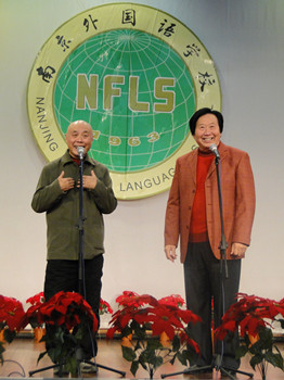 梁尚义、李国先一出现在南外门口,就被路过的老南京认了出来,笑谈他们的成名作《150844》上前叙旧。之前,应央视《笑星大联盟》的邀请,他们还赴京录制了“南京好人”系列节目,将于春节前后推出。对于这次面向高中生们推广南京话,两位年届七旬的艺术家备课十分认真,演出开场前两人还在对词儿。他们告诉记者,接到邀请特别开心。李国先说,“我们说相声常常宣传南京话,所以希望同学们也能学学乡音。今后出国远离家乡,在国外跟老乡用乡音交流,乡音连着乡情,就会特别亲切。很多东西毁灭了就无法复原,南京话也是非物质文化遗产,希望它可以在大家的口耳相传中保留。”