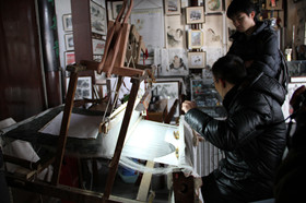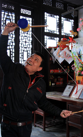 这里周末的人流并不算多,甚至可以算得上冷清。在院落中隔出的小屋内,艺人们正忙着手里的伙计。除了传统的葫芦、抖翁制作外,我们还新奇地发现了缂丝、点画等几经失传的技艺。老艺人们都很好客,一位画国画的老爷爷随手拿起一张宣纸就开始向近旁的两位小学生