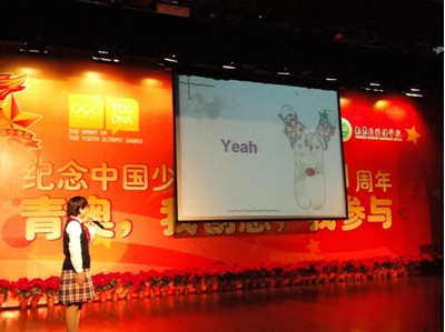 少先队员们,在这里,我倡议:让我们积极参与青奥、强身健体,努力学习,争当青奥志愿者,把握好四年的时间,为南京2014年青年奥林匹克运动会做好充分的准备!相信我们将与青奥共同成长!相信我们会创造更多的辉煌!