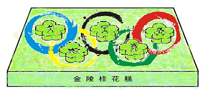上面奥运五环中间的一环中有一个徽章,里面上刻辟邪,下刻明城墙,体现南京文化,也点明了2014青奥会将在南京举办。