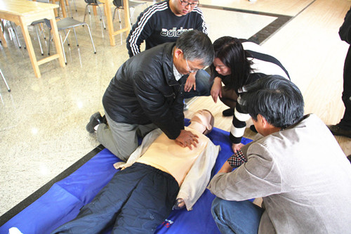 4月16日下午三时,我校党委、行政、工会组织举办了一次“心肺复苏及现场急救”的培训。参加人员来自各个岗位的30多位义务消防员。