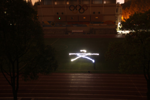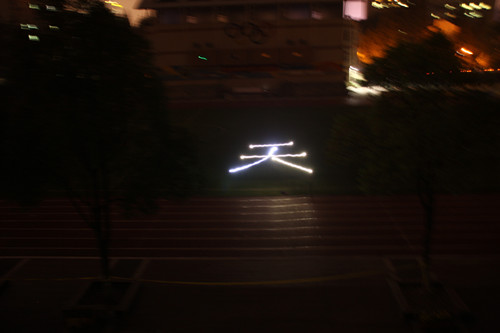 原先计划的使用望远镜来观星,由于一些安排上的问题没用成,大家就躺在学校操场上聊了聊望远镜的使用方法,了解了一些最新的天体现象和动向。最后我们在操场上,用手电筒摆出了天文两个字来结束这次的活动。