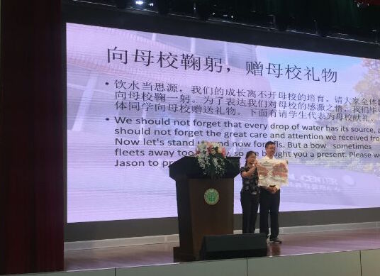 在一个又一个精彩的发言之余,高三毕业生们也带来了精彩的演出。戏剧表演,芭蕾舞表演,同时也展示了高三同学们精心制作的毕业视频。视频里记录了三年的青春旅程,有青涩的照片,也有老师同学的采访。外教与中方老师们都给予了中肯的建议与美好的祝福,同学们也抒发了三年学习生活的感悟与交代给学弟学妹们的肺腑之言。整个视频生动有趣,配乐也极其感人,不少老师同学和家长都受其感染,在分别之际情不自禁流下了眼泪。