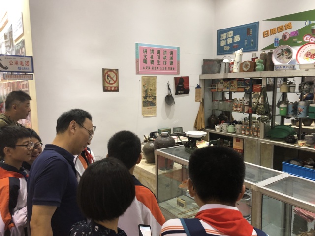 10⽉7⽇,初⼀年级同学和老师、家长们一起参观了江苏省庆祝改革开放40周年图⽚展。在“历史跨越”展厅陈列着“衣、食、住、行、用”等生活各方面的变迁,勾勒出改革开放给人民生活带来的实实在在的变化。40年前的老照片、老物件,让“00后”们感到新奇,仿佛“穿越”到自己的父辈、祖辈经历的那个年代,直观感受改革开放带来的巨大变化。“真没想到,改革开放前的人们穿着几乎一样的衣服!”看着1978年的老照片,同学们感到无比新奇。在当时,人们穿的是千篇一律的灰色或蓝色的中山装、解放装,被外国人形容为“灰蓝世界”,那时能拥有一件“的确良”就能成为时尚。这里记录了很多南京城的变迁,在国庆这个特殊的日子里参观,不仅能勾起大家浓浓的回忆,更能激发同学们的爱国热情。