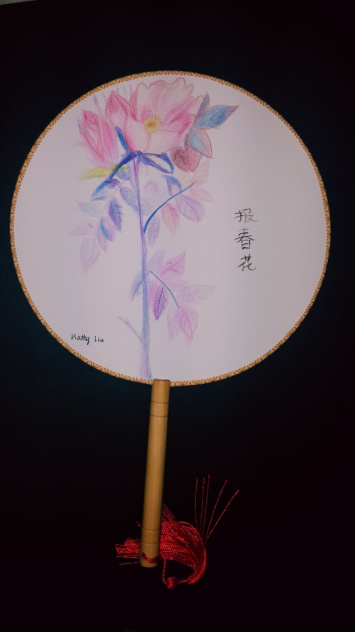 渐入佳境,这是一场人与植物的对话,每个同学都用自己的情感表达着他们对自然的热爱。很快许多漂亮、包含情感的团扇就完成了。