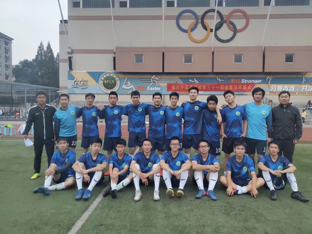 首战,10月16日下午15:30南外主场迎战玄武高级中学,赛前训练南外积极演练战术,最大化球队对足球的控制。叶教练在赛前强调了比赛心态和安全的重要性。这不禁令队员们想起在上届市长杯上因为队员的心态失衡和大面积伤停的种种非实力因素,南外遗憾地在十六强落败。许久没有参加比赛的队员们对胜利怀揣着由衷的渴望,在上半时开场时便迅速进入状态建立起攻势。不到4分钟便由新任队长吴皓天远射建功。领先的南外借助主场优势继续控制球权,消耗对手的体能。在上半场临近尾声时肖国豪在3分钟内两次接到周敬杰的直塞梅开二度,南外带着3-0的比分进入了中场休息。中场时,叶教练强调了边路进攻的多样性和边后卫处理球的要点,替补队员们悉数开始热身。下半时,领先的南外优先立足防守,反击也给玄高的后防线制造了众多威胁。在下半时进行了20分钟左右,高一的新队员何乃成,郭屹岷,陈麒光和薛狄瀚先后上演了校队首秀,在比赛的最后时间里纷纷展现出当仁不让的球技。替补出场的李翰宸锦上添花,帮助南外4-0顺利拿下了新赛季首场比赛胜利。