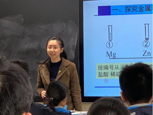 以人教版化学九年级下册第八单元课题2《金属的化学性质》为课题,工作室成员周子艺老师和仙林外校樊俊根老师分别展示了同课异构的研究课。周子艺老师的课堂聚焦金属活动性及其判断依据,通过探究金属和盐酸、稀硫酸的反应、金属和其他金属化合物溶液的反应,引导学生通过探究实验的设计建立比较金属活动性强弱的实验方法与思维模型,突出了模型建构和证据推理等核心素养的培养。樊俊根老师的课堂从学生已有的知识出发,结合生活中的现象和学生分组实验,引导学生从不同的视角理解金属与氧气、盐酸、稀硫酸的反应,不仅夯实了基础知识,还锻炼了学生的动手和实验探究能力,培养了学生的合作意识。
