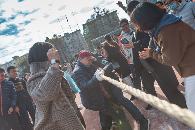 平时在讲台上严肃认真的老师,撸起袖子在操场上相互角力,看得学生们好不兴奋。在一片欢声笑语中,南外教职工冬季拔河比赛圆满结束。