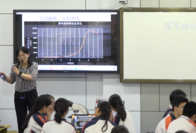 徐胜媛老师和宁海中学刘晓珍老师同课异构,分别利用矩道科技生物虚拟仿真软件开展《探究酵母菌种群大小的动态变化》实验复习课。徐胜媛老师的课堂内容层次清晰,逻辑紧密,将VR的沉浸感和交互性融合到常态化复习的各个环节中,让学生们通过身临其境的实验探究,获取微观可视化、过程直观化的感受,让学习更加高效。