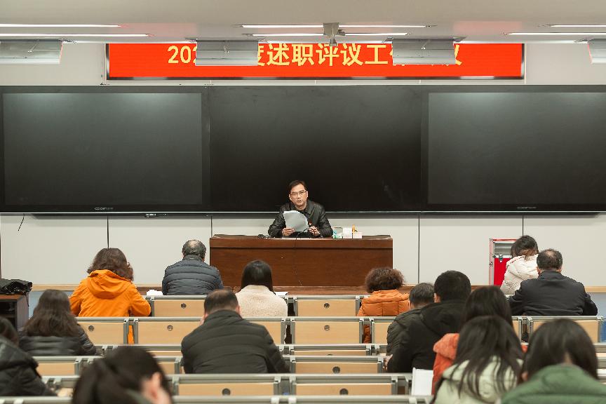 1月5日下午,2021年度述职评议工作会议在E二楼阶梯教室召开。会议由校党委书记刘前树主持,校行政、党委领导班子成员、教职工代表出席。