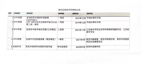 3.经本人申请,现将综合评价获奖情况申报材料公示如下: