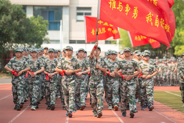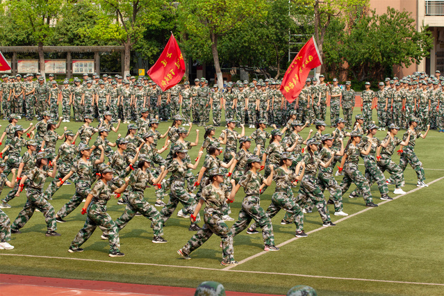一到训练基地,同学们的身份就迅速从学生转变成了“军人”。“流血流汗不流泪,掉皮掉肉不掉队。”从早训到晚训,从站军姿到唱军歌,从队形演练到内务评比,同学们克服体能的不足和对天气的不适,严格要求自己,不仅在行动上,更在思想和精神上进行刻苦的训练,正所谓千琢璞为玉,百炼铁成钢。