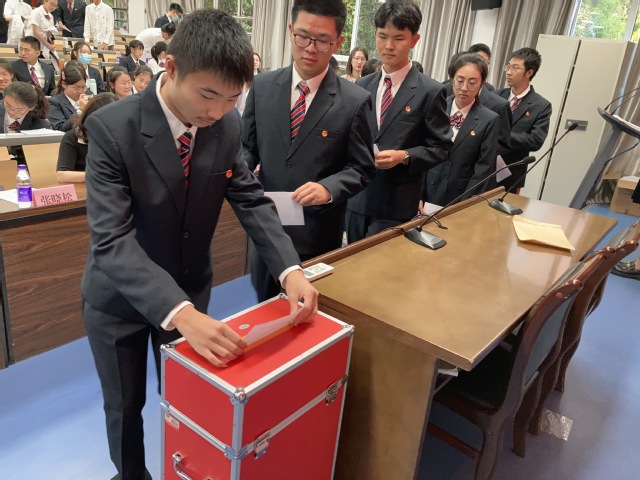 监票人当场检查票箱,计票人发放选票,全体团员代表采用无记名方式进行投票。候选人分别从各自的学习、特长等方面进行竞选演讲。他们纷纷表示,要以高度的责任心与使命感担起校团委委员的责任,做好共青团工作。经过监票人和计票人的统计,由校纪委吕燕书记宣布选举结果:王少林、尤宁(女)、程子懿(女)、纪涵予(女)、王彦舒(女)、马彤畅(女)、徐宁远、胡容晓(女)、赵孙稼(女)、吴雨潼(女)、韦秋霖(女)等11位同志当选为共青团第三届委员会委员。