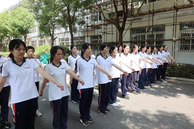 早上,我们寝室统一在五点醒来,迅速整理完内务。随着一声哨响,我们班整队前往大操场练习跨立并进行跑圈。上午练习的是摆臂,我们抬着头,挺着胸,将手臂尽力绷直。