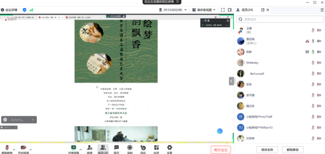 11月13日上午,我校与北京一零一中学在线上举行了一场基于艺术的跨学科活动性课程分享会。北京一零一中学的陈默老师、魏立柱老师、殷卫霞老师,艺术教研组组长曹启海老师、全体艺术组教师及南外教育集团分校部分艺术教师参加了此次线上分享会。